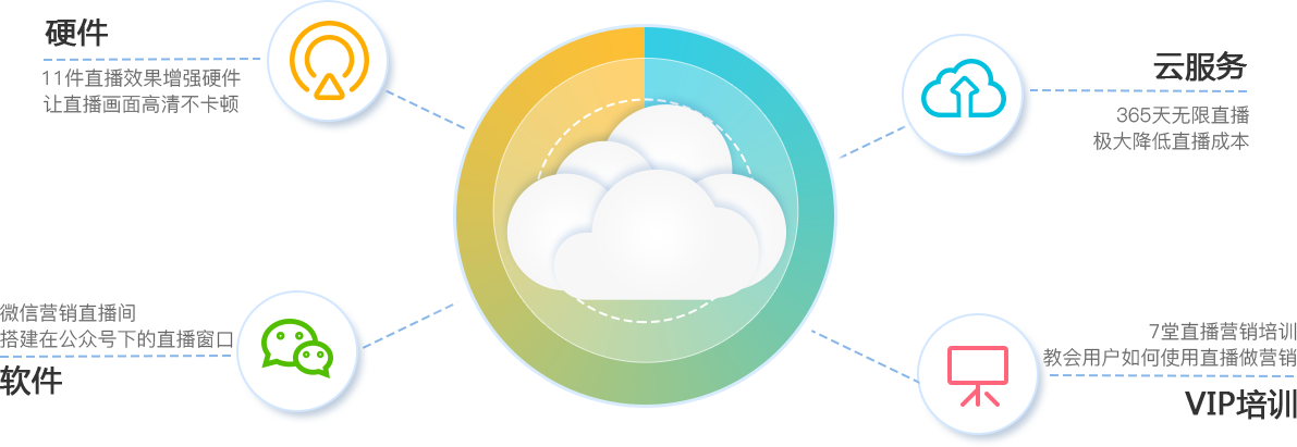通过移动互联网技术,帮助客户简单、高效、一站式解决直播问题,让直播更简单